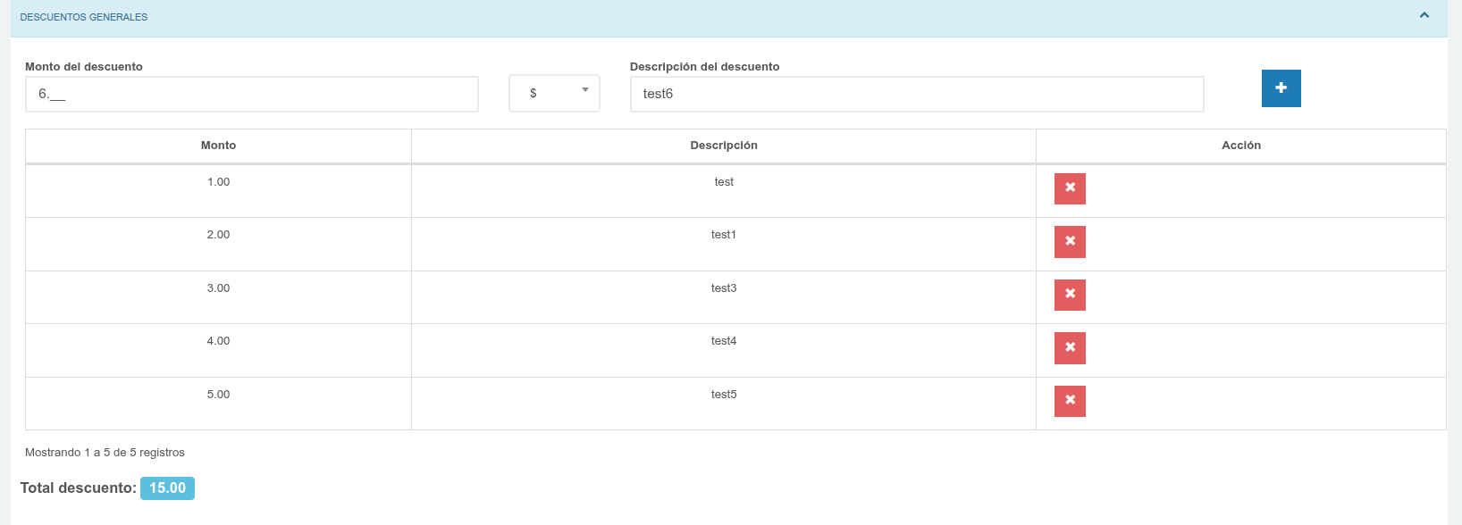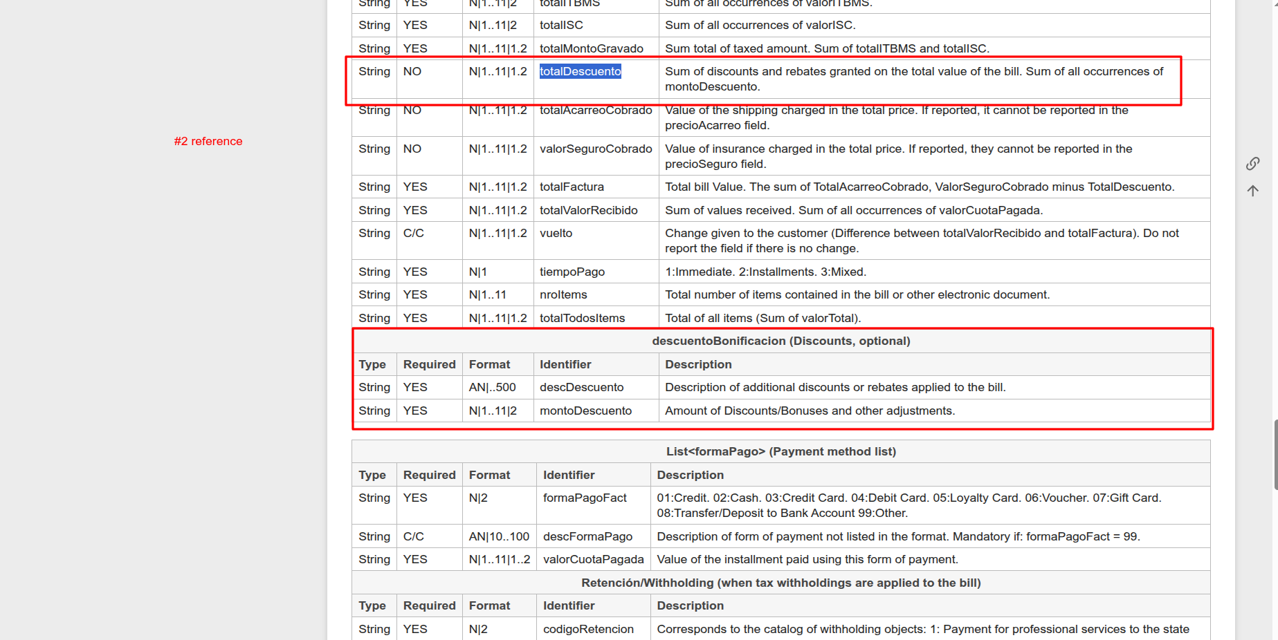 2. Descuentos generales: (descuentoBonificacion (Descuentos, opcional))