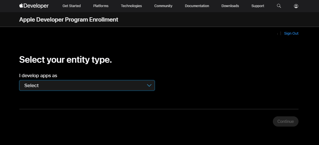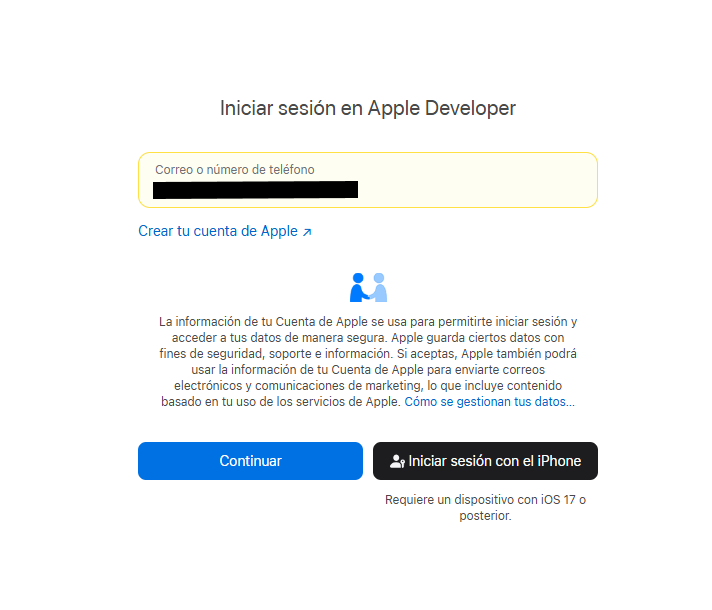 Crear cuenta de desarrollador de Apple
