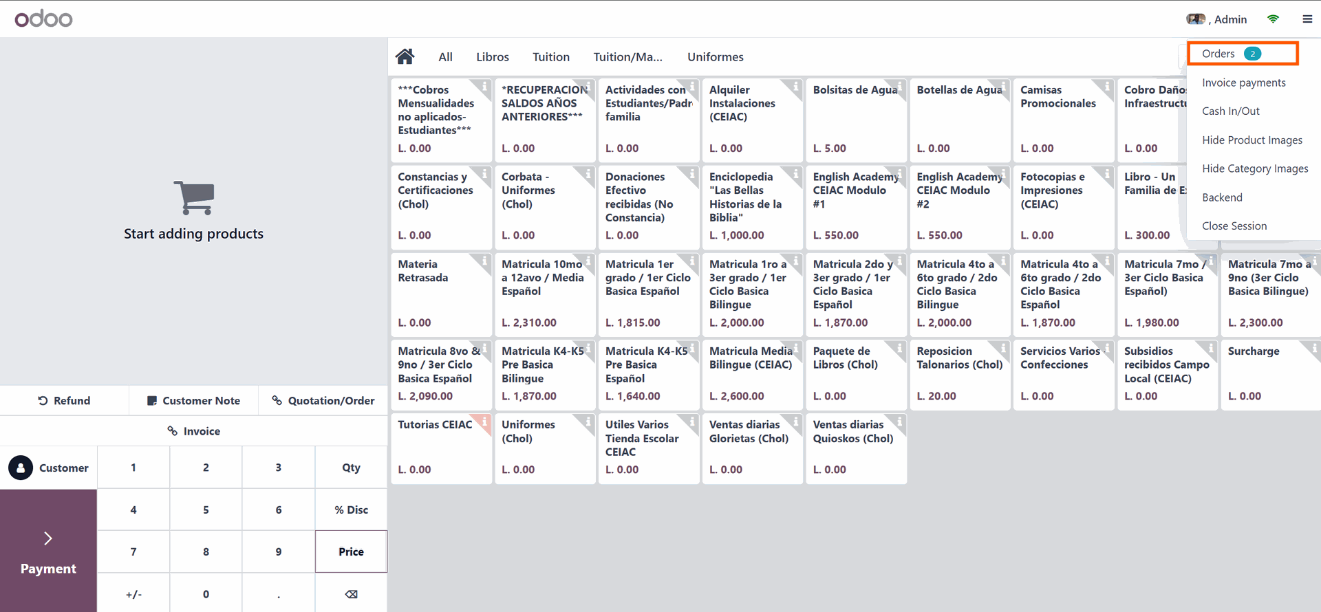 He añadido tres productos, con diferentes métodos de pago para el padre.