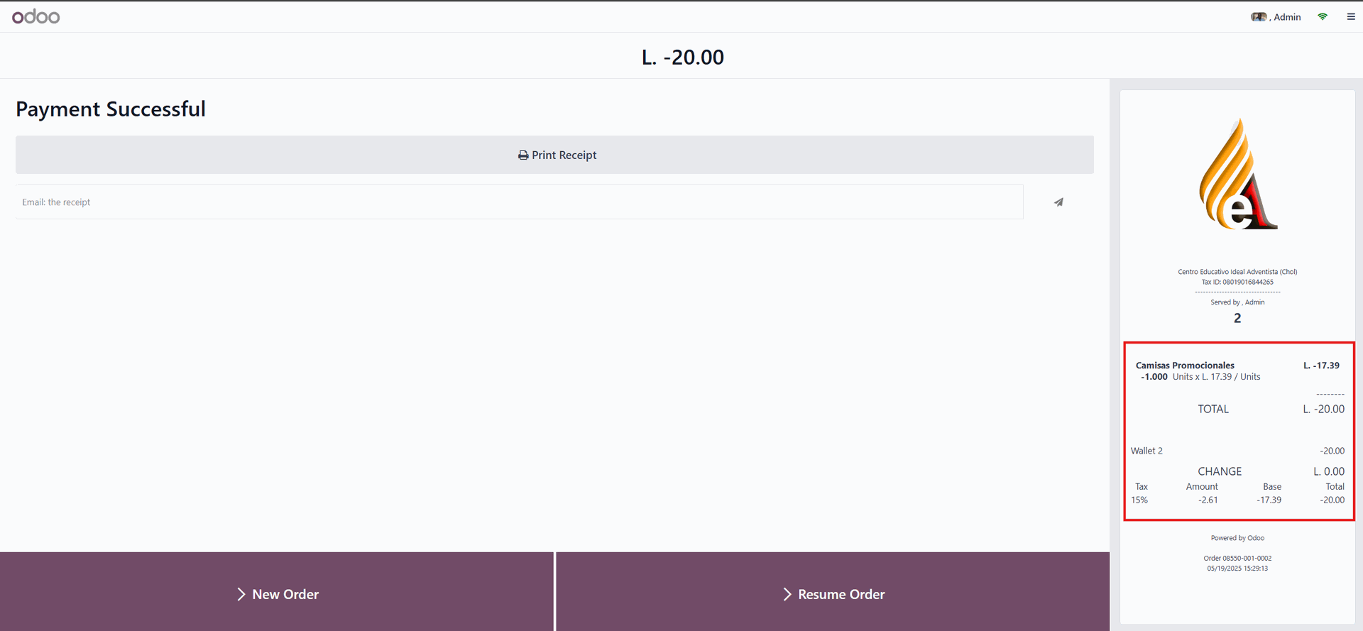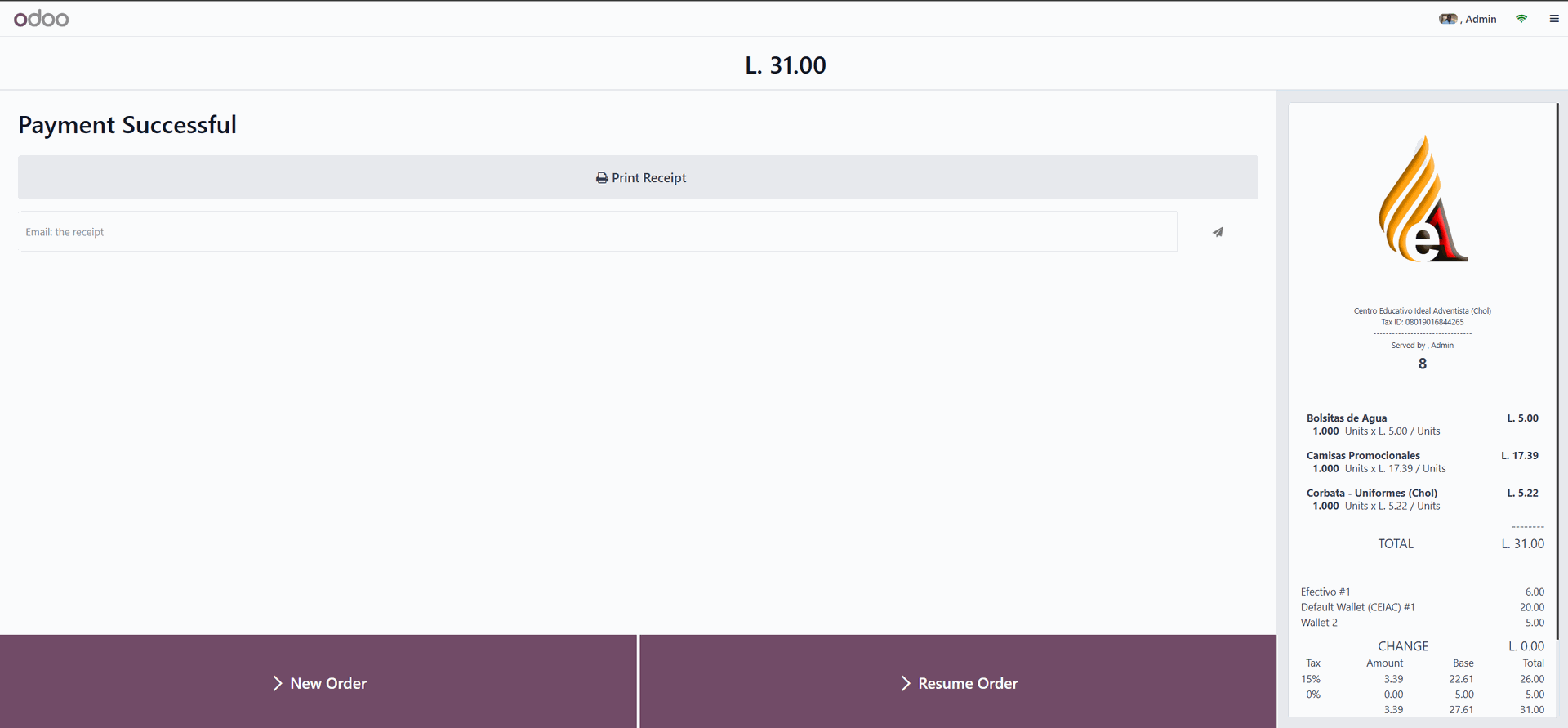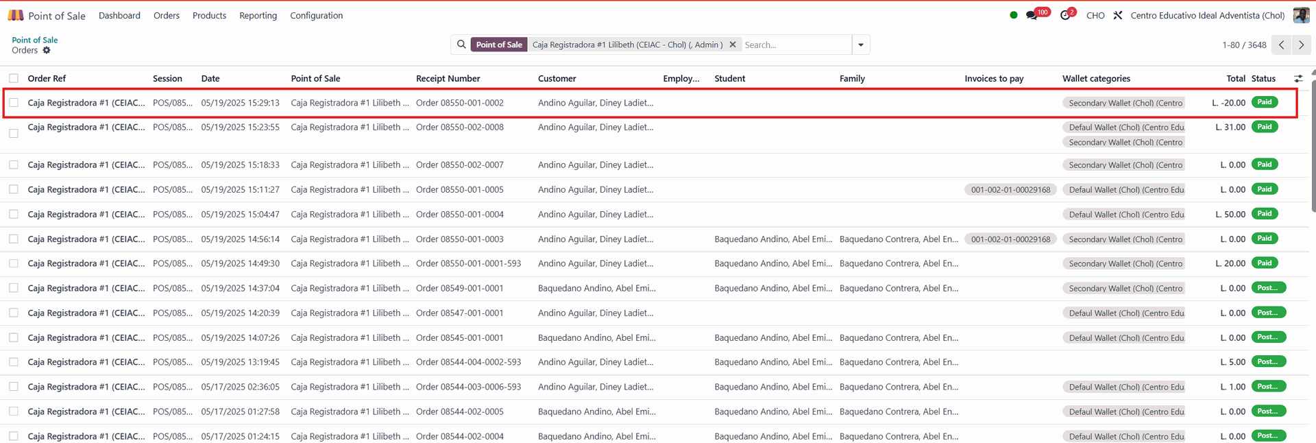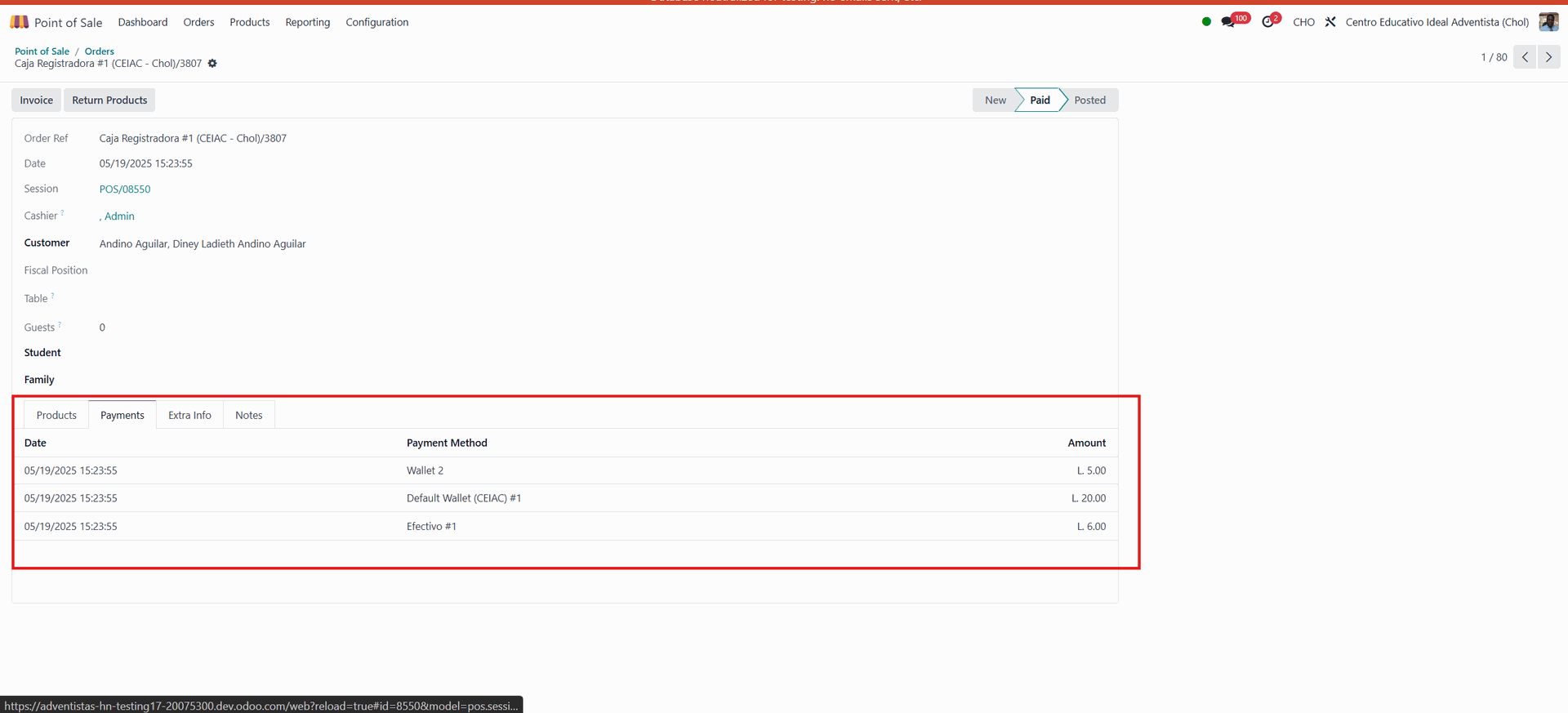 EJEMPLO 2: Compro dos productos y los pago con Wallet para el estudiante.