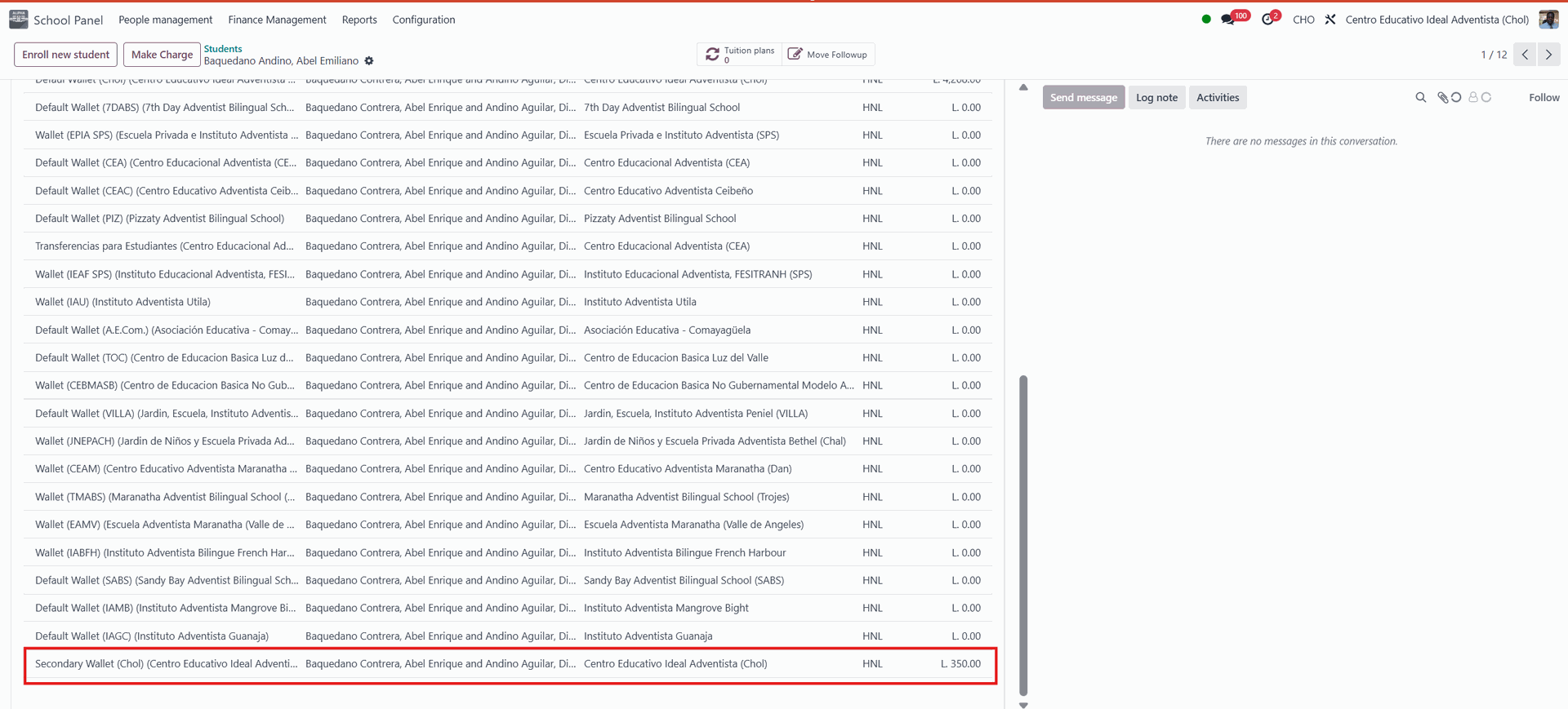 Accedo al wallet del padre para ver que se le ha devuelto.