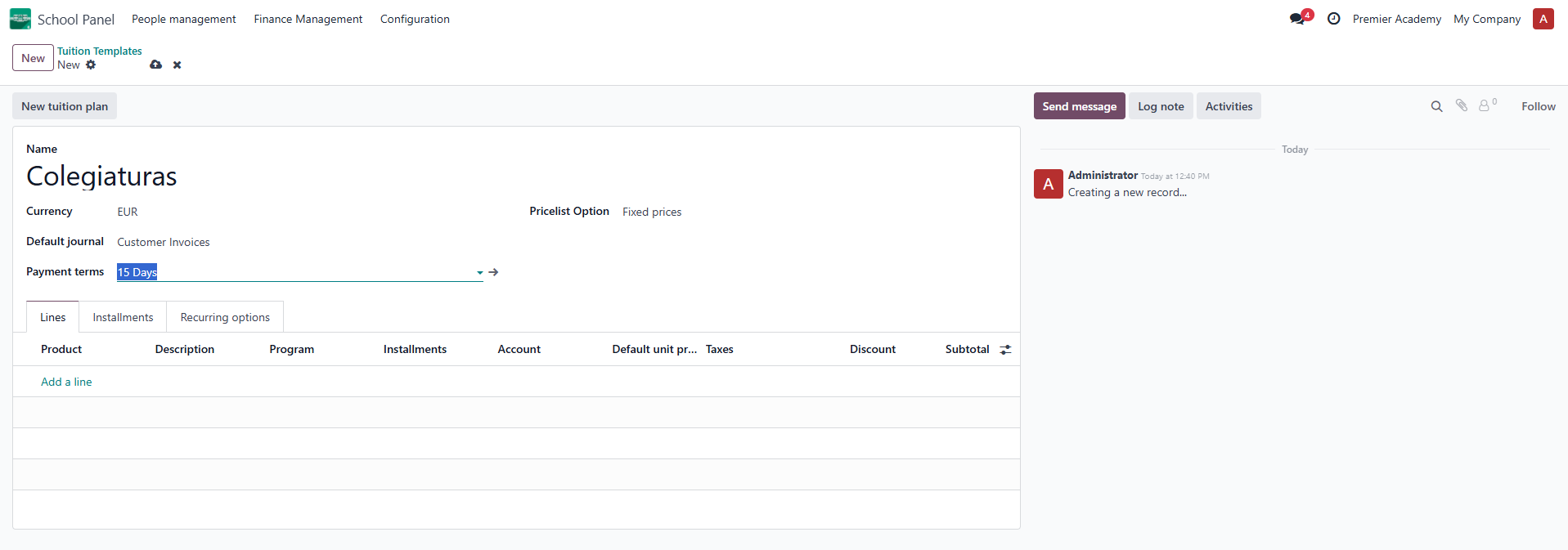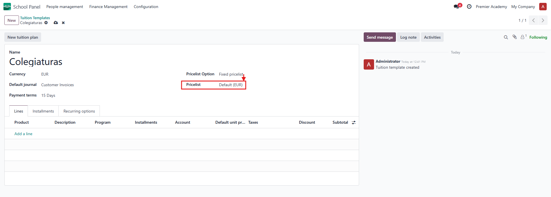 Pricelist Options: Las opciones de las listas de precios. En este caso se puede optar por aplicar becas o descuentos automáticos de diferentes maneras.